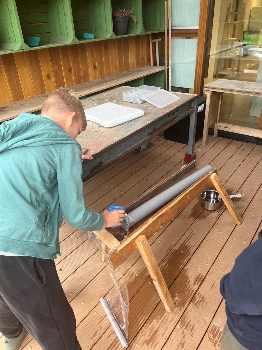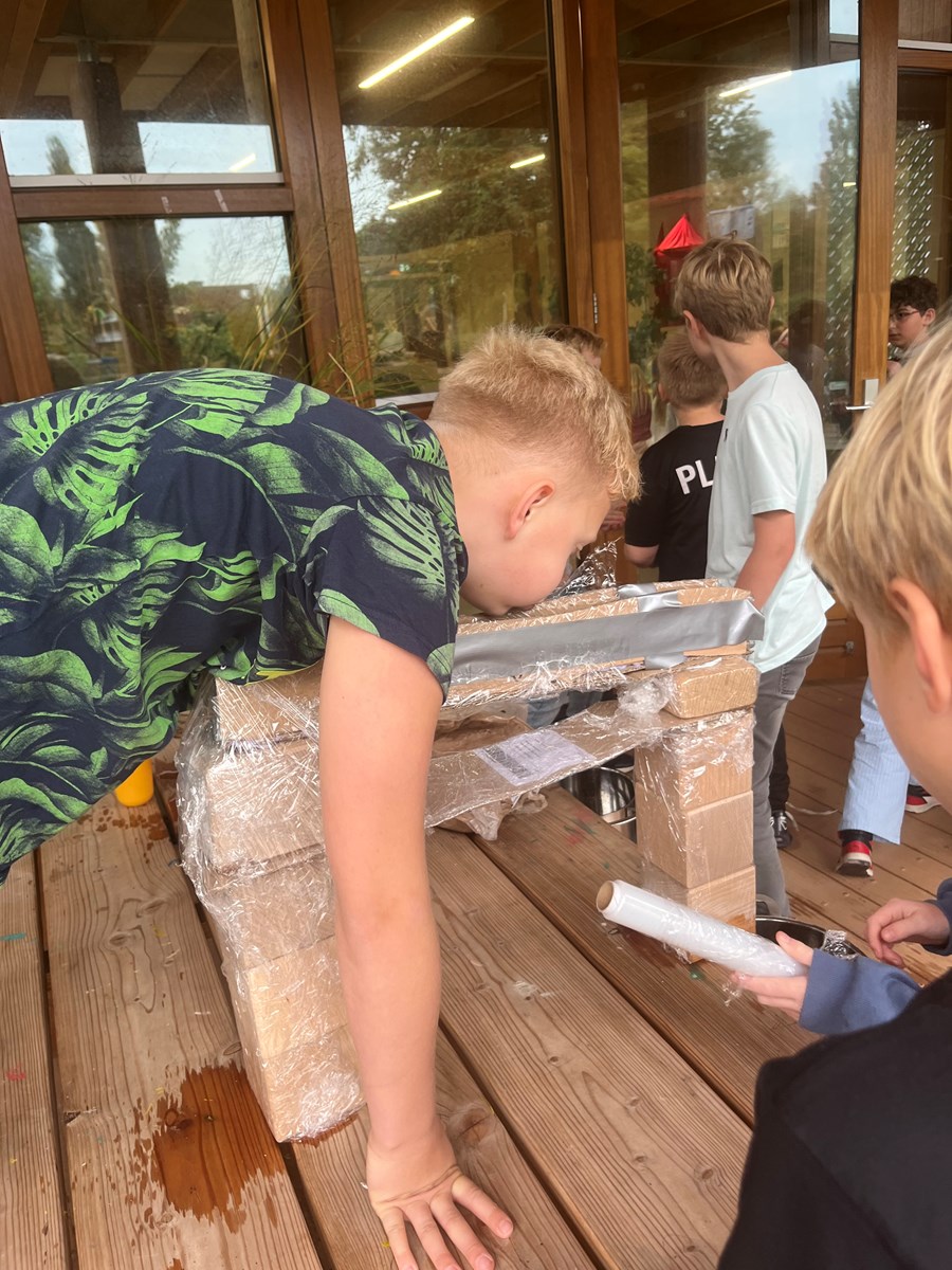 Deze week waren we bij de Grieken en Romeinen. Net zoals ze dat vroeger deden moesten de kinderen ook zelf een aquaduct bouwen. Ze moesten nadenken over materiaal, helling en stevigheid. Nou wat een enthousiasme zeg, onwijs leuk! Vandaag de laatste handelingen verricht en uitgetest. Nadat alle aquaducten bleken te werken verscheen er een rekensom met Romeinse cijfers. Het antwoord bracht ze naar het tweede sleutelstuk.