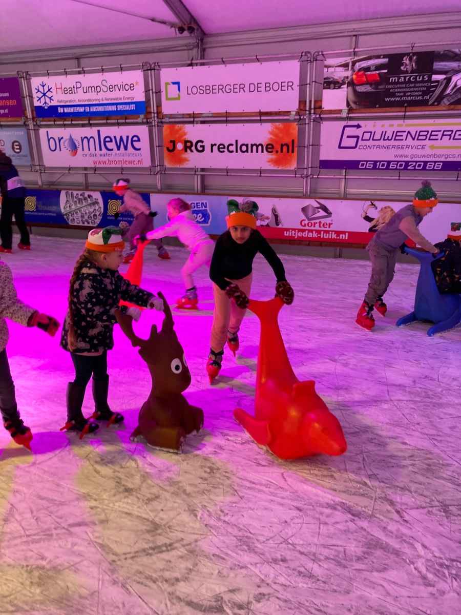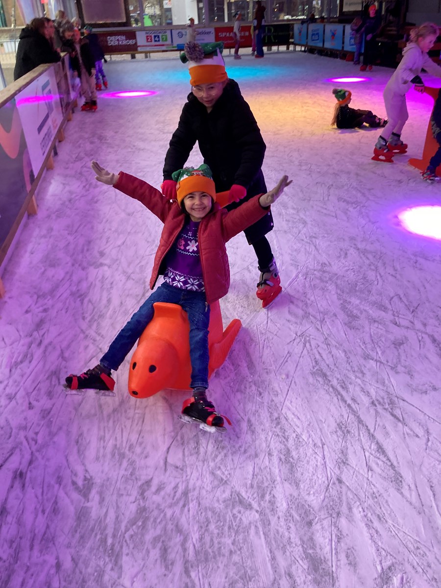 Vanmiddag mochten we dan eindelijk schaatsen op de schaatsbaan in het centrum van Schagen. Veel kinderen kunnen al een beetje schaatsen, voor sommigen was het de eerste kennismaking met het ijs. Het was desondanks, en soms met vallen en opstaan, een geslaagde schaatsmiddag.